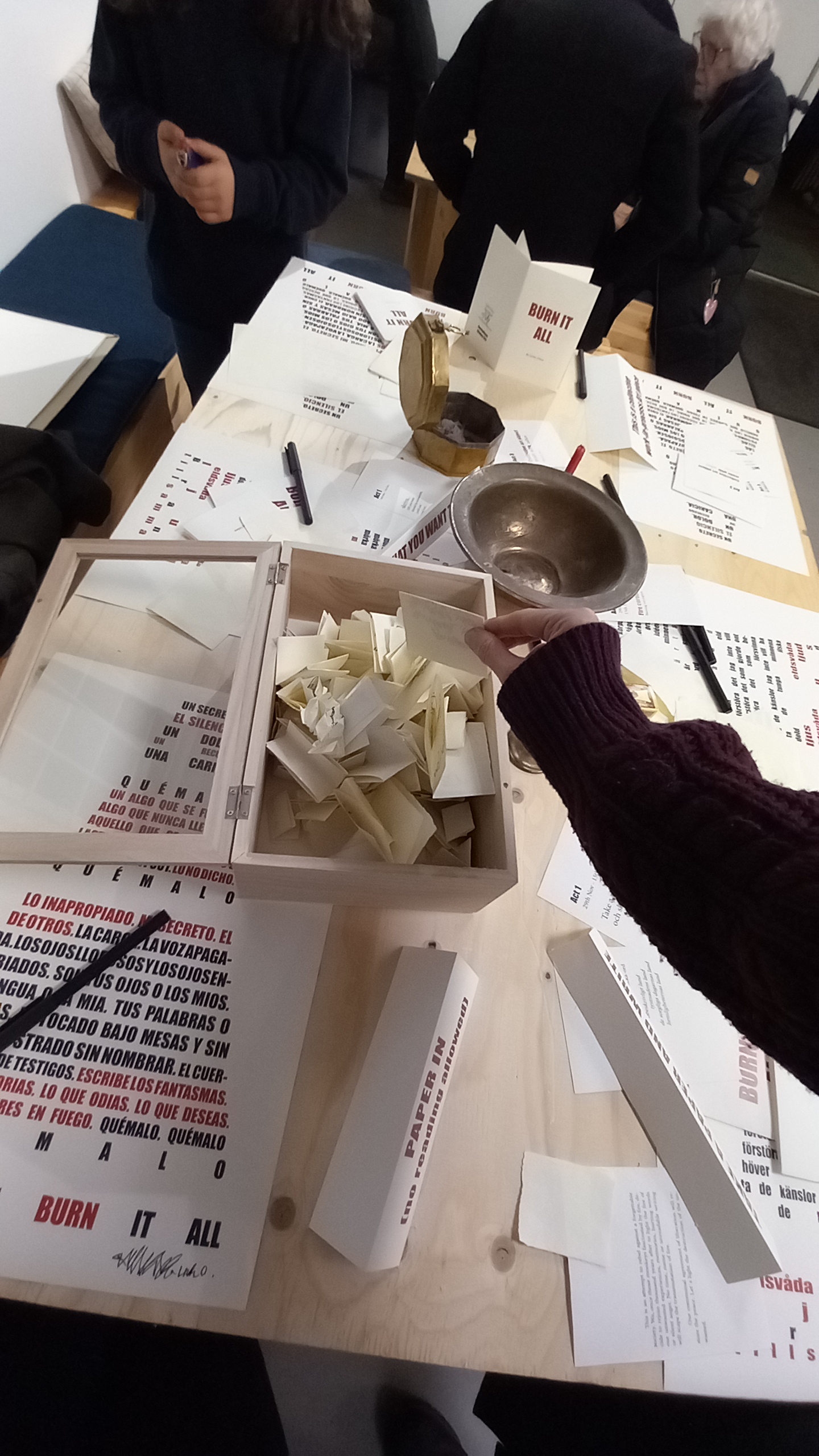 The last two «Burn it out» perfomances were hold in 2024, one in Mölndal in an event hosted by Konstkollektiv and the last one in Konstepidemin during the Medlemsutställning in December.